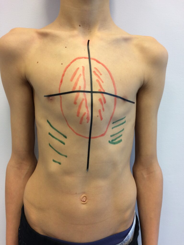 Uniesienie mostka odsuwa go od serca i nie dochodzi do bezpośredniego ucisku serca jak w klatce lejkowatej. Z czasem jednak, po 19 roku życia, usztywnienie ściany klatki powoduje zmniejszenie wydolności oddechowej i ogólnej sprawności fizycznej. Sprzyja także utrwaleniu skrzywienia kręgosłupa.