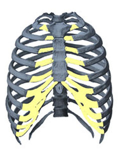 Klatka piersiowa zbudowana jest z mostka, żeber i kręgosłupa. Na żółto zaznaczone części żeber są miękkie, elastyczne gdyż zbudowane są z chrząstki, a nie kości. Połączenie chrząstki i kości jest elastyczne, co pozwala na swobodne oddychanie. To właśnie chrząstki i mostek są zagłębione w klatce piersiowej lejkowatej.