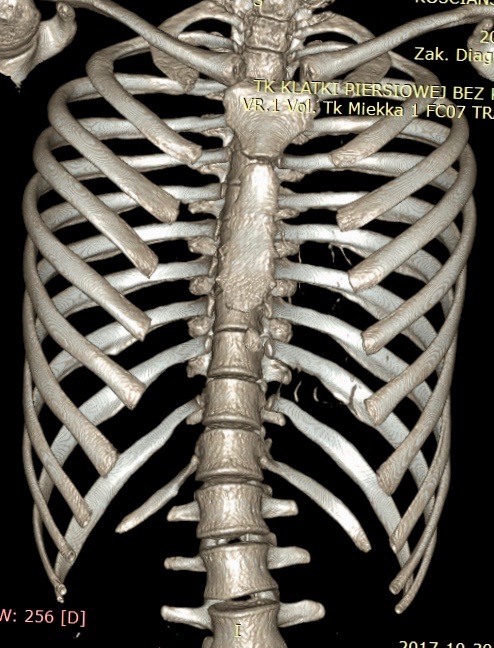Widoczne żebra (kość) NIE są zniekształcone tak w klatce lejkowatej jak i kurzej. Zniekształcenie dotyczy tylko chrząstek. Niewidoczne na zdjęciu chrząstki żeber są zagłębione i łączą się z mostkiem.